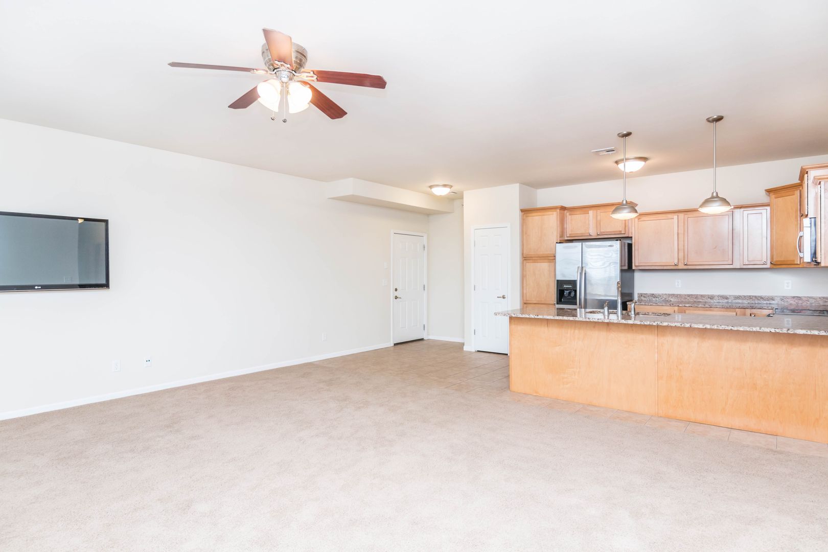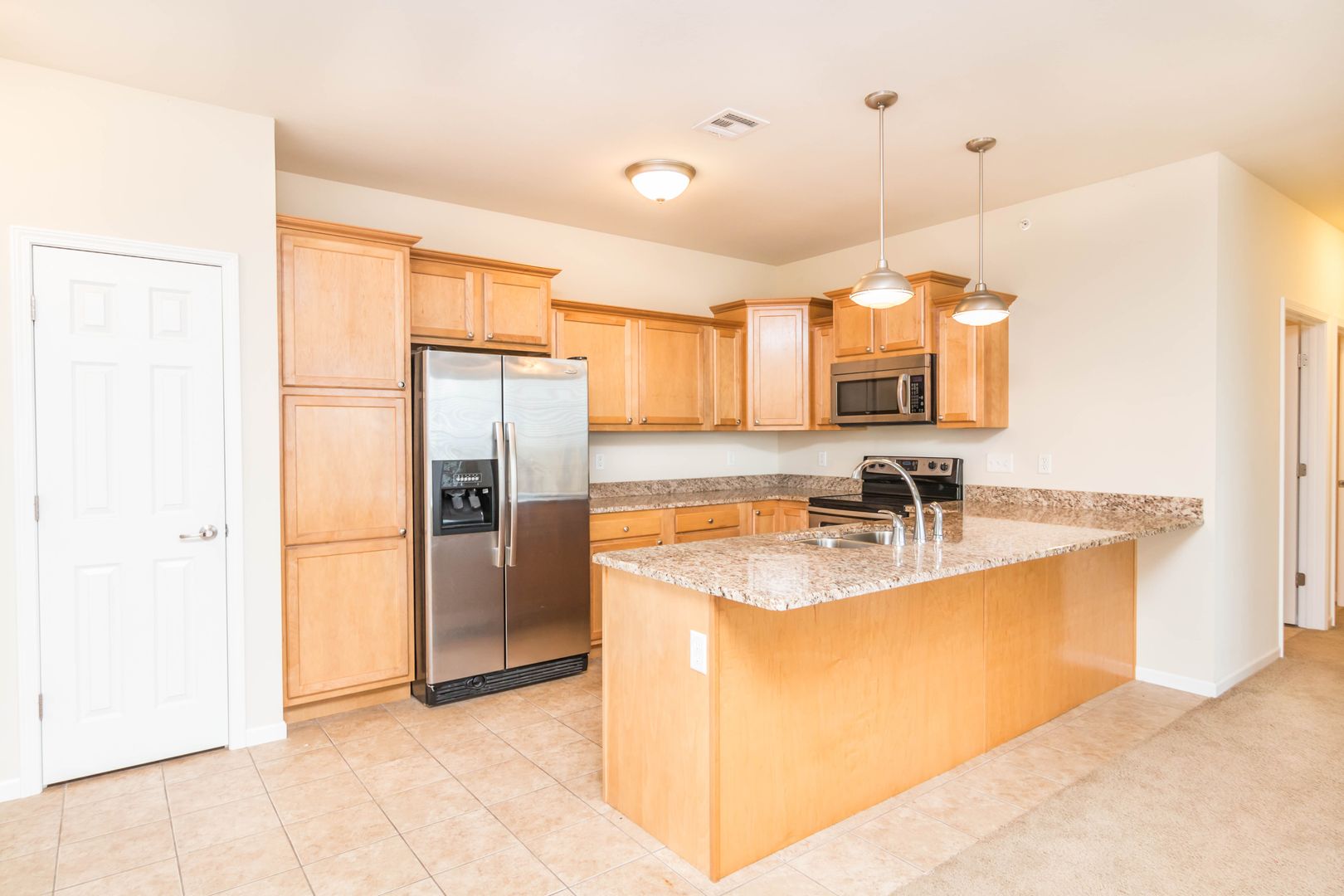 Upgraded appliances, including washer/dryer. Granite counter tops; ceramic tile flooring. Lots of square footage & storage.