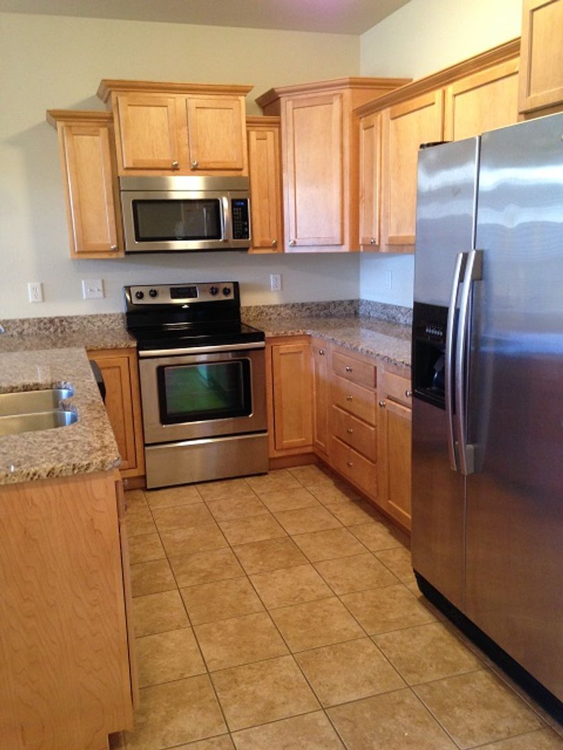 Upgraded appliances, including washer/dryer. Granite counter tops; ceramic tile flooring. Lots of square footage & storage.