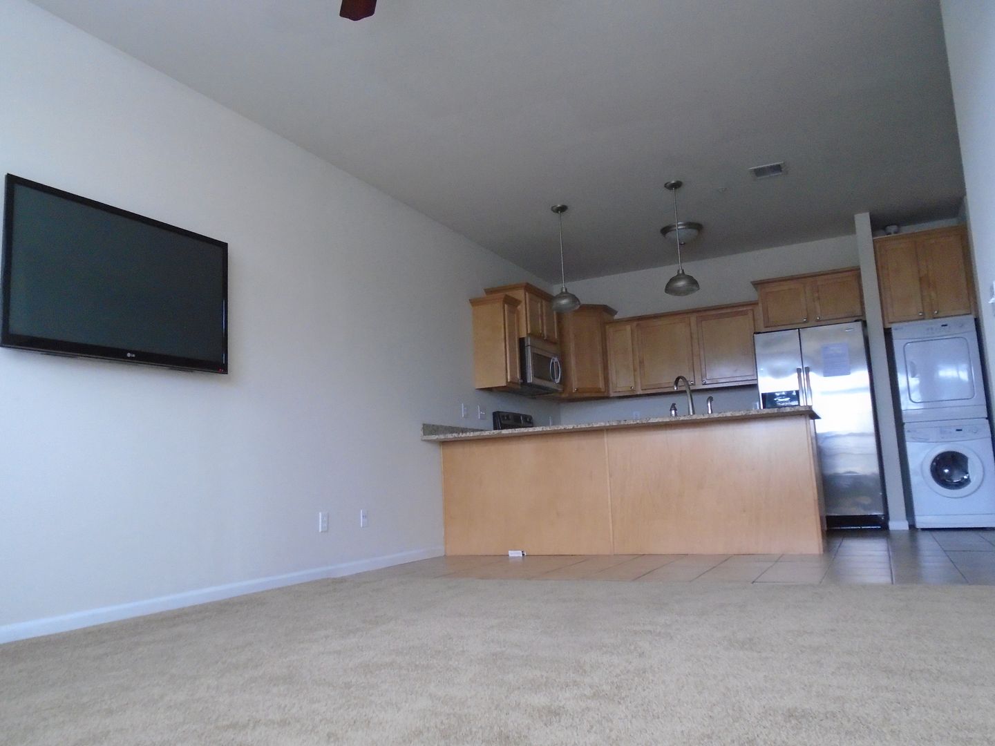 Upgraded appliances, including washer/dryer. Granite counter tops; ceramic tile flooring. Lots of square footage & storage.